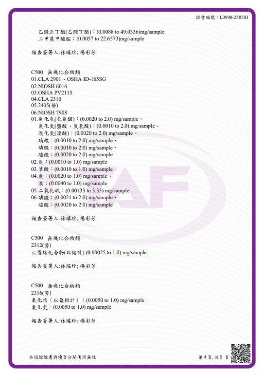 優實檢驗的職業衛生實驗室,為通過Taiwan Accreditation Foundation認證的合格實驗室。(認證編號3990)