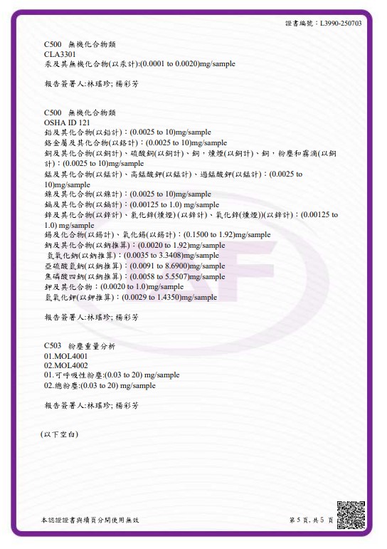 提供有機溶劑、特化物質、粉塵、重金屬...等多項分析項目: